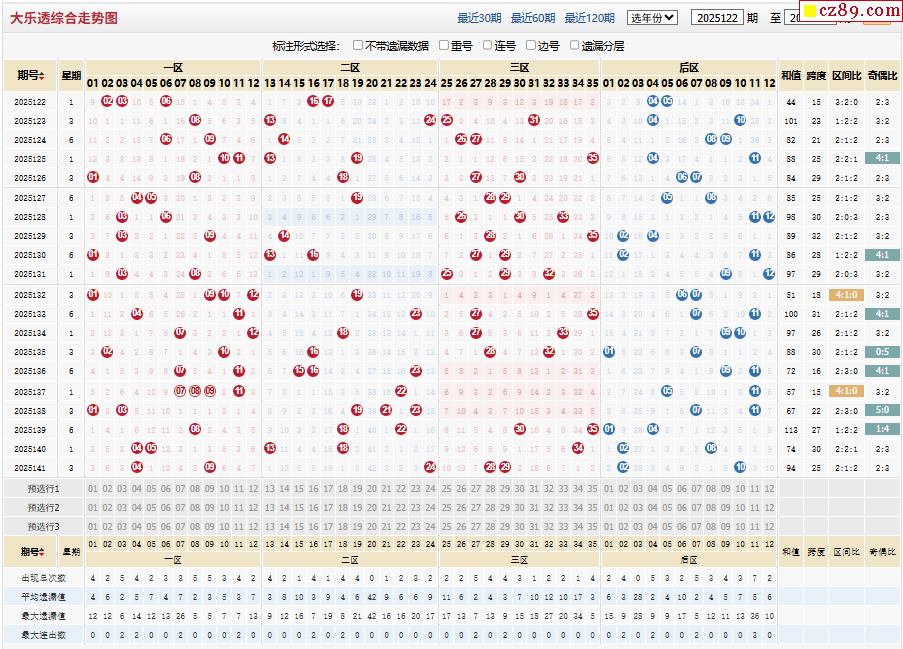 首页 > 大乐透预测 > 25年142期体彩大乐透近期走势图分析